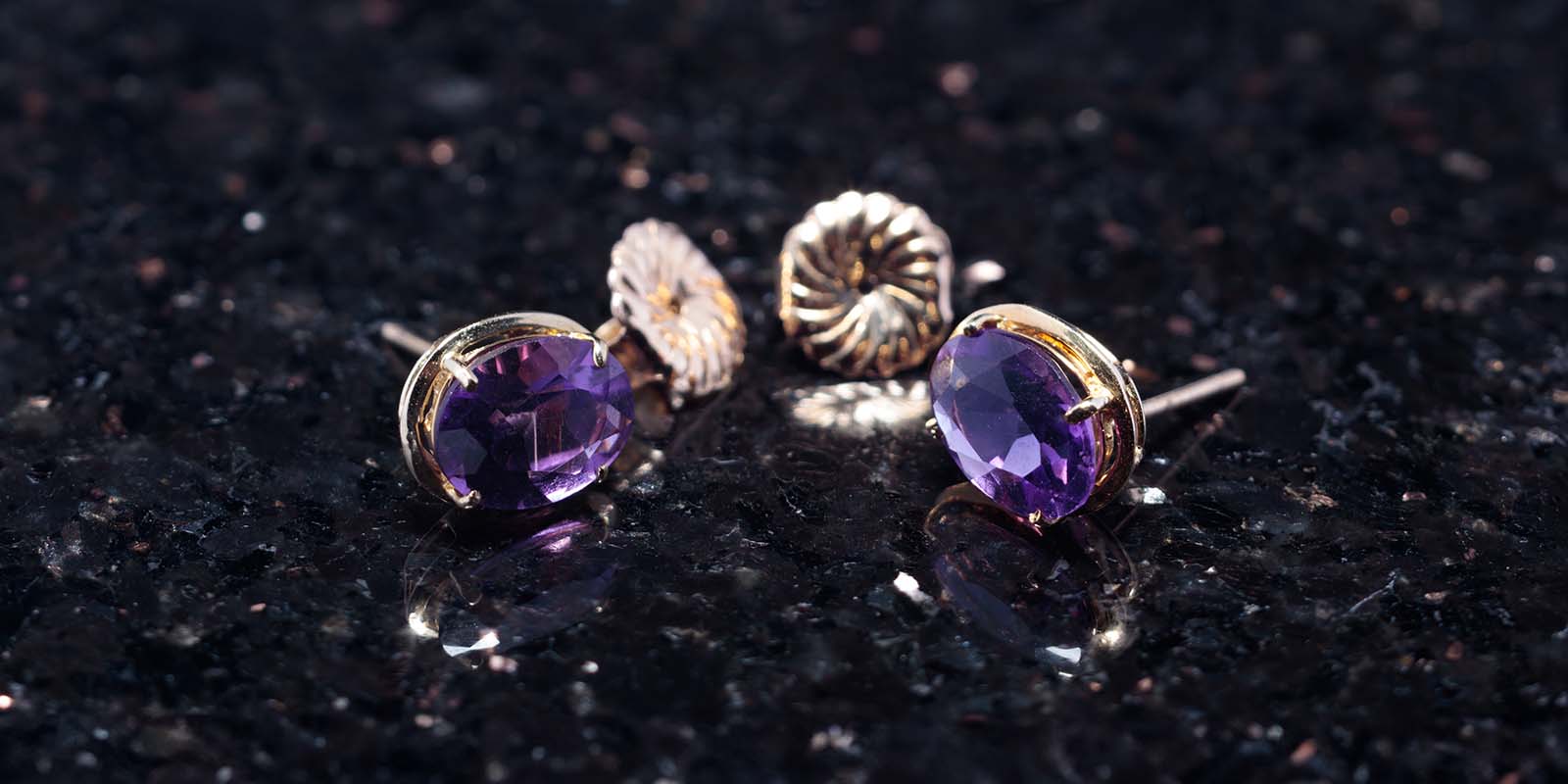 Ohrstecker aus 585er Gelbgold mit purpurnen Amethysten