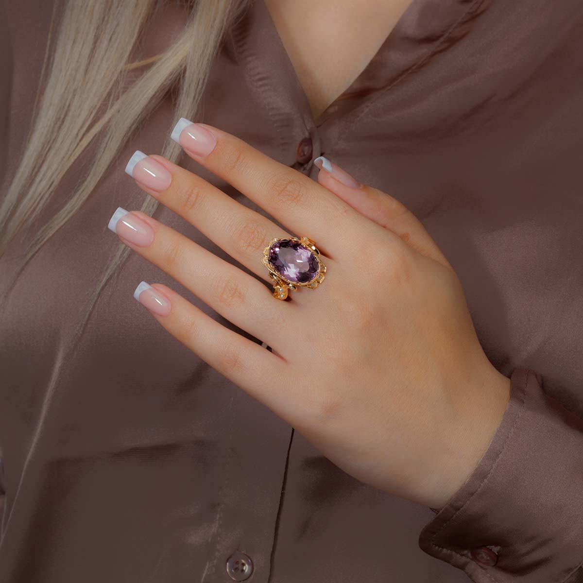Ein zauberhafter Amethyst-Ring mit Akzenten aus feinen Flussperlen