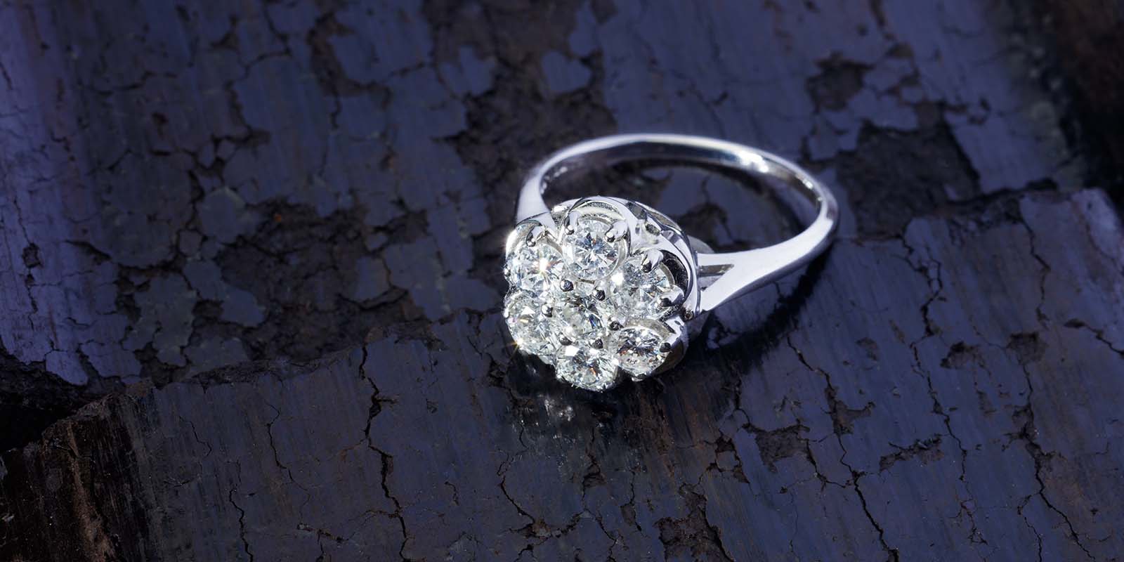 Eine hervorragende Alternative zum klassischen Cocktailring – eine prachtvolle Blüte aus sieben Diamanten