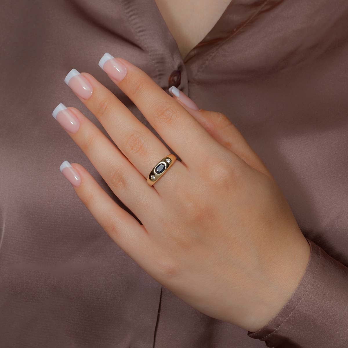 Ein schlanker Bandring mit einem verführerischen Saphir und zwei Diamanten