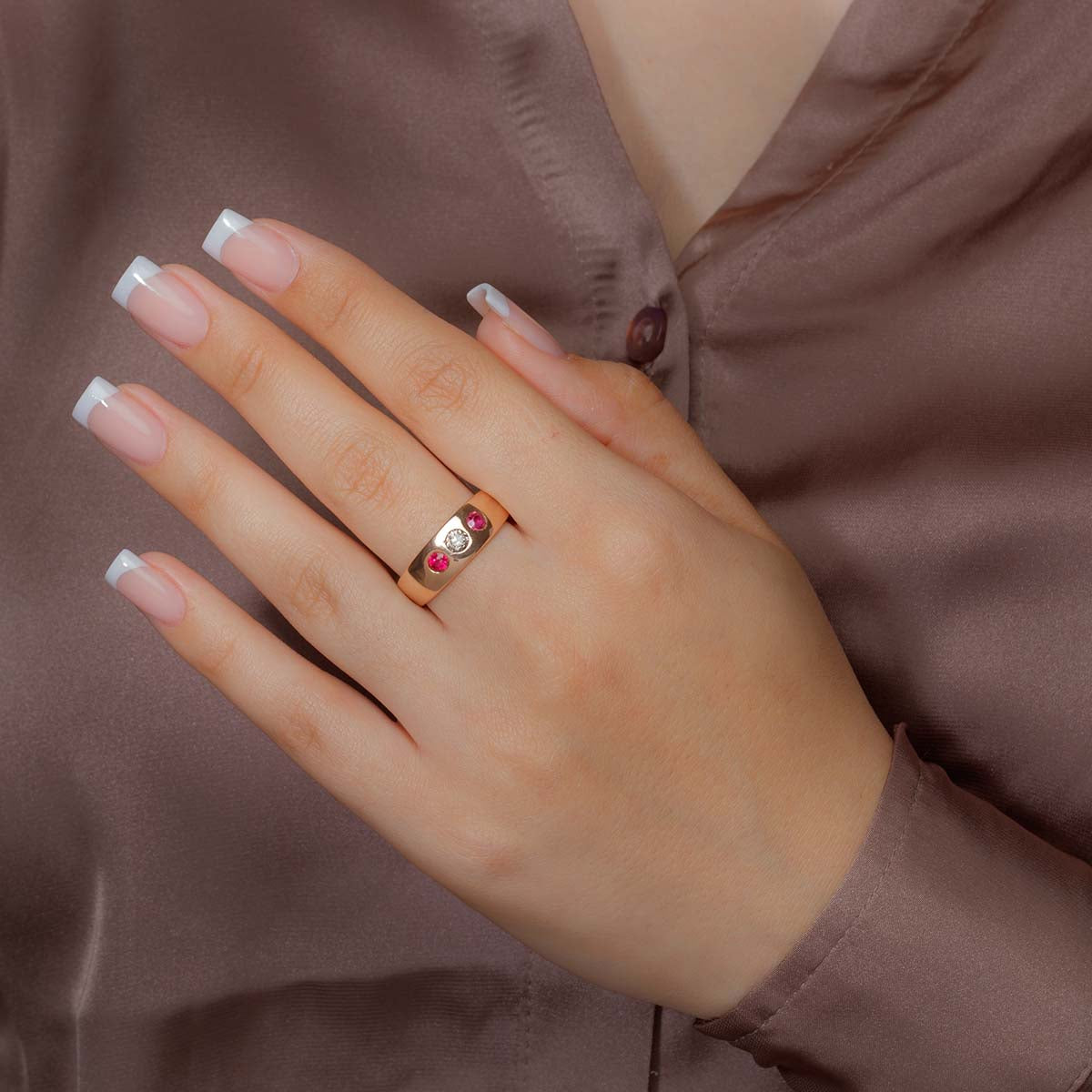 Famoser Bandring mit zwei Rubinen und einem Brillanten