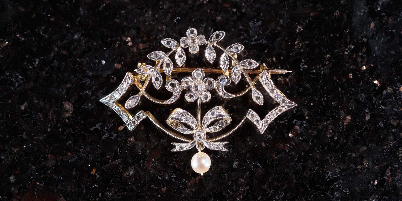 Eine filigrane Bicolor-Brosche aus 750er Weißgold und Gelbgold
