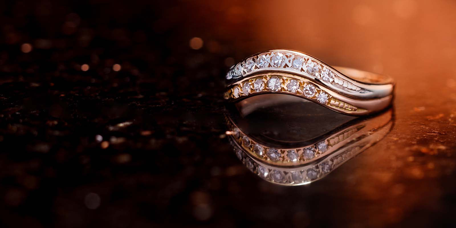 585er Rotgold und Weißgold – zu einem Ring verbunden und mit 14 Diamanten verziert