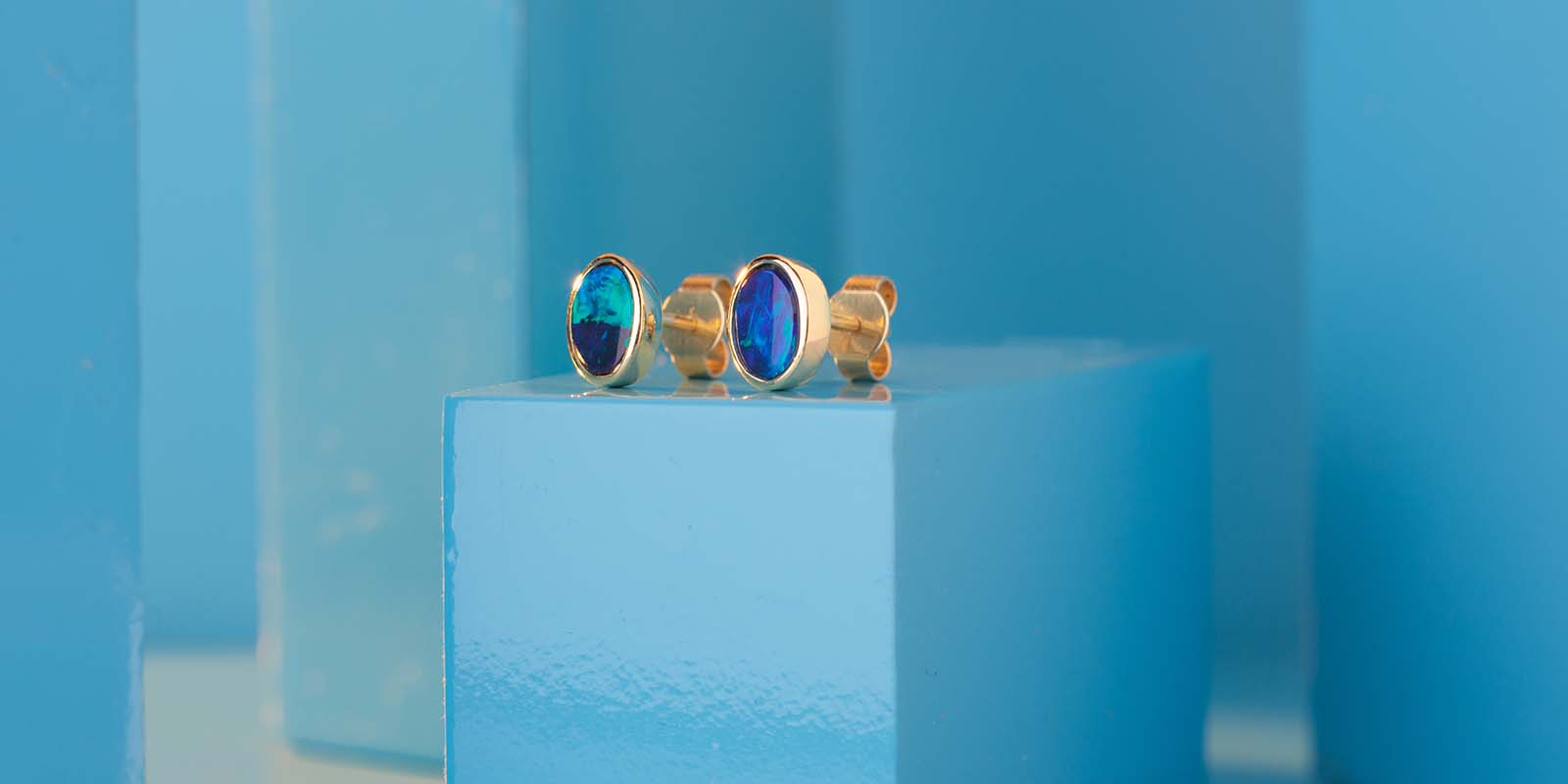 Zierliche Ohrstecker aus 585er Gelbgold mit Besatz aus blauen Opalen