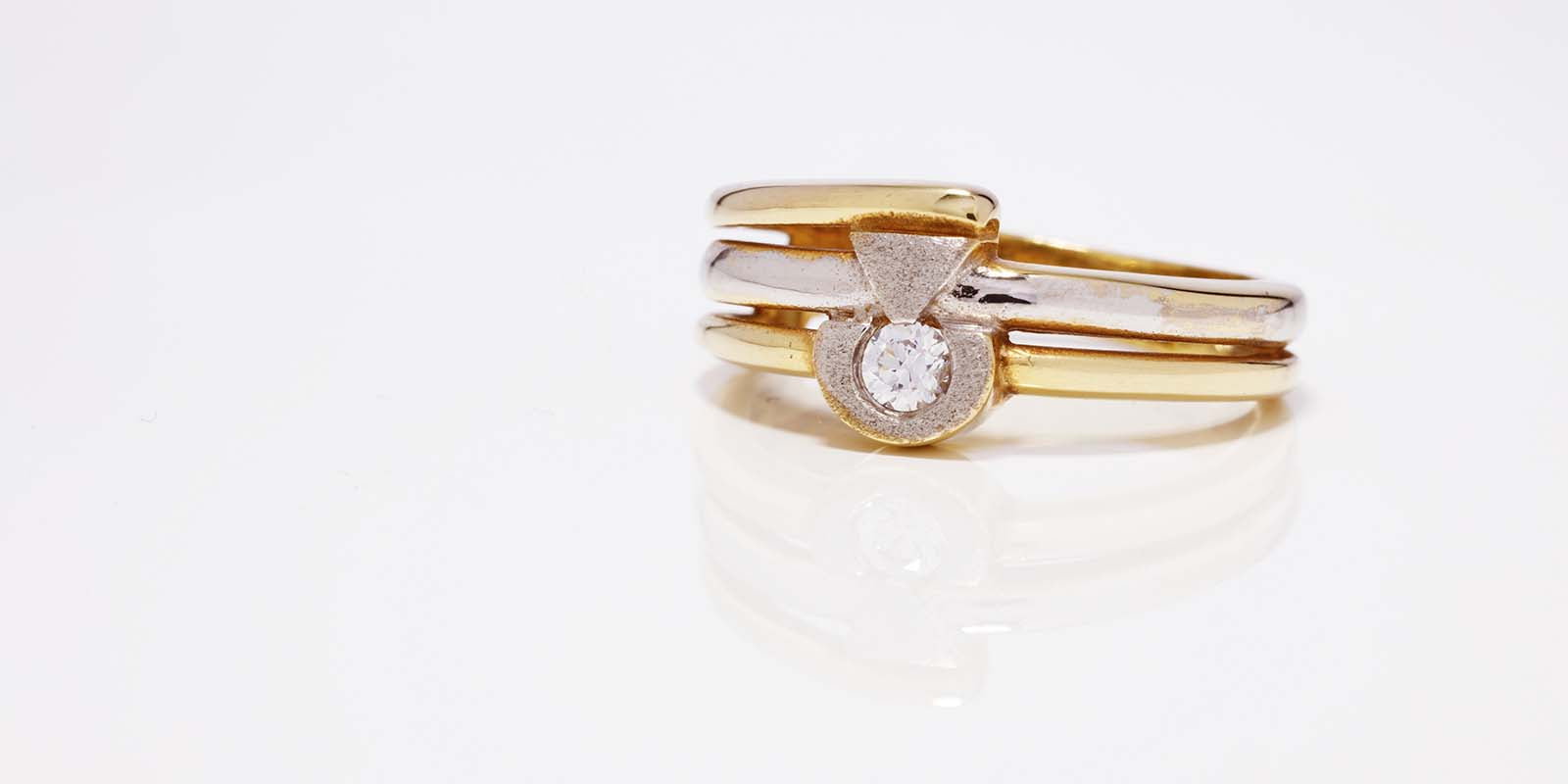 Außergewöhnliches Ringdesign in 333er Weißgold und Gelbgold mit Zirkonia-Besatz