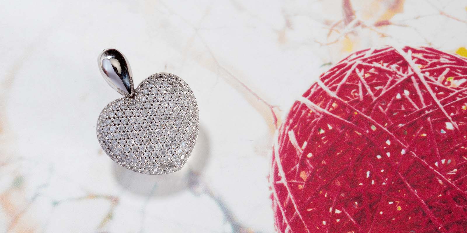 Ein praller Herz-Anhänger aus 585er Weißgold, reichhaltig mit Diamanten besetzt