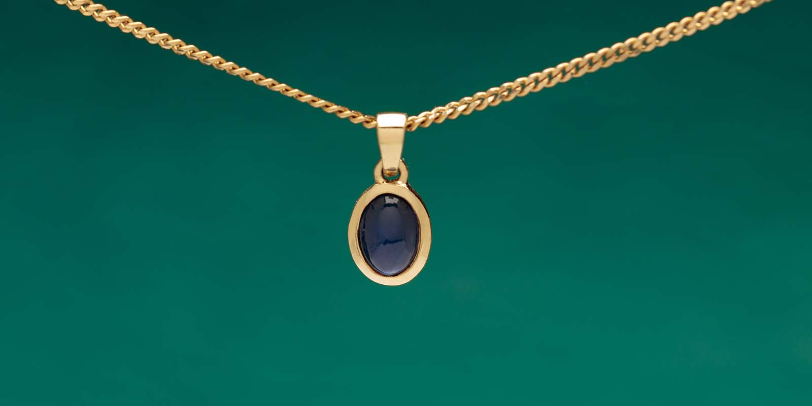 Ein edler Saphir auf einem Anhänger aus 585er Gelbgold