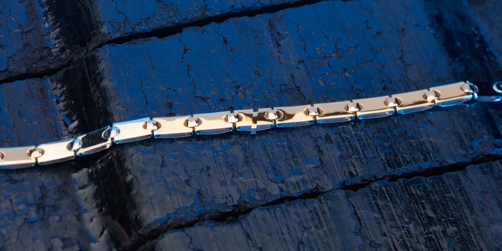 Aus länglichen Plättchen gefertigtes Gold-Armband aus 585er Gelbgold