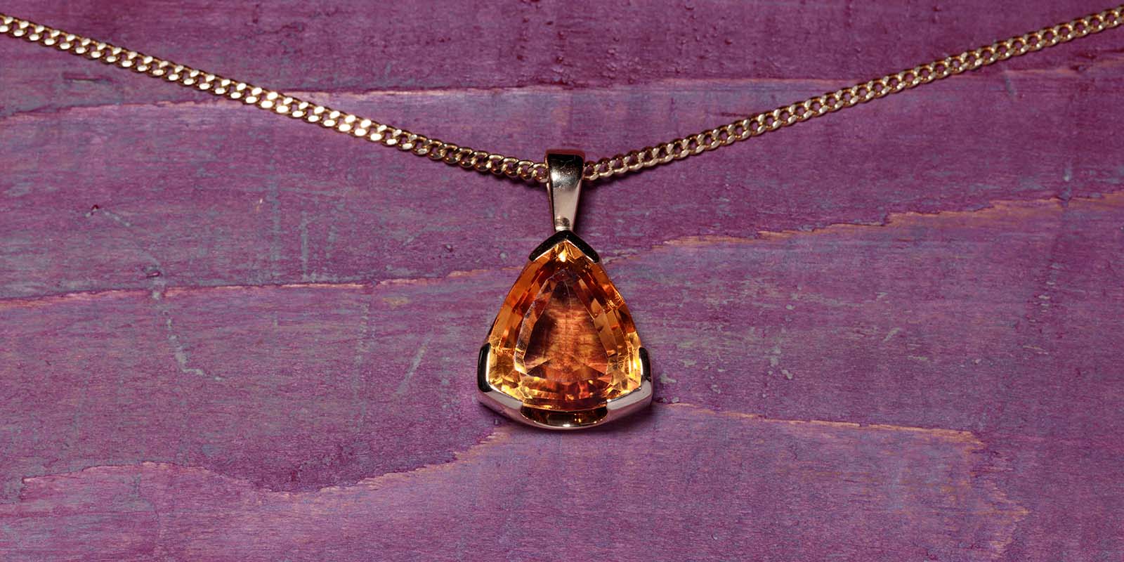 Ein Citrin-Anhänger mit großer Leuchtkraft an einer Panzerkette aus 585er Gelbgold