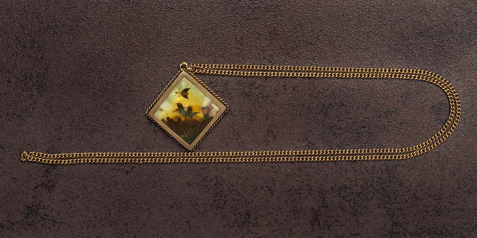 Panzerkette aus 585er Gelbgold mit Motiv-Anhänger im Stil des Souvenirschmucks der Biedermeier-Ära