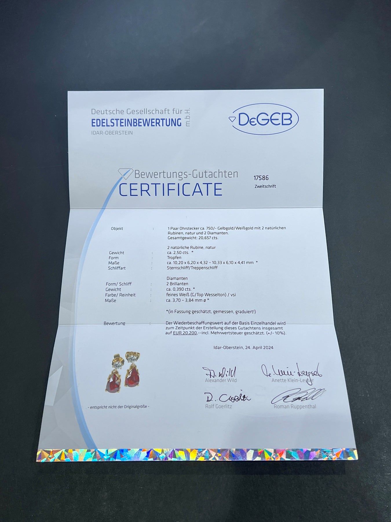 Auf hoch detaillierten Fotografien können Sie jedes Schmuckstück eingehend betrachten. Bei Abmessungen, Steinqualität oder Gewicht sind minimale Abweichungen möglich. Sollte ein Schmuckstück einen geringfügigen Makel aufweisen – zum Beispiel einen Riss im Edelstein – wird in der Artikelbeschreibung darauf hingewiesen.