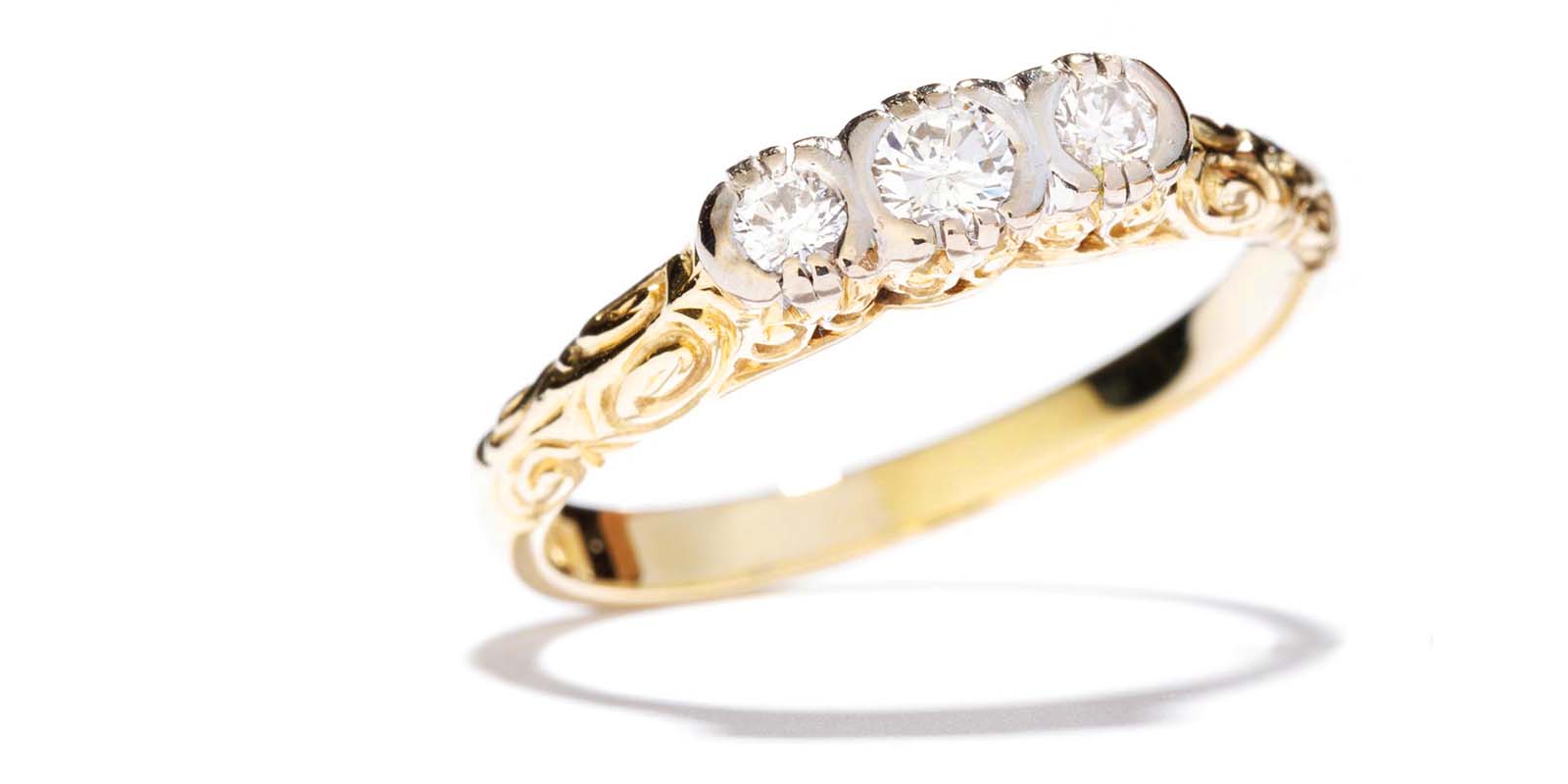 Ein Ring wie ein feines Diadem – drei Diamanten auf 585er Gelbgold