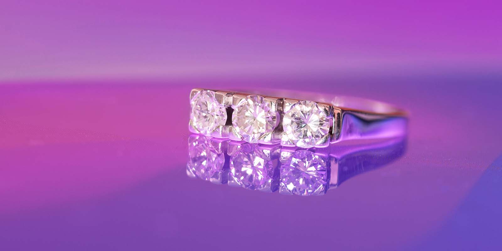 Drei funkelnde Diamanten reihen sich auf diesem Ring aus 585er Weißgold aneinander