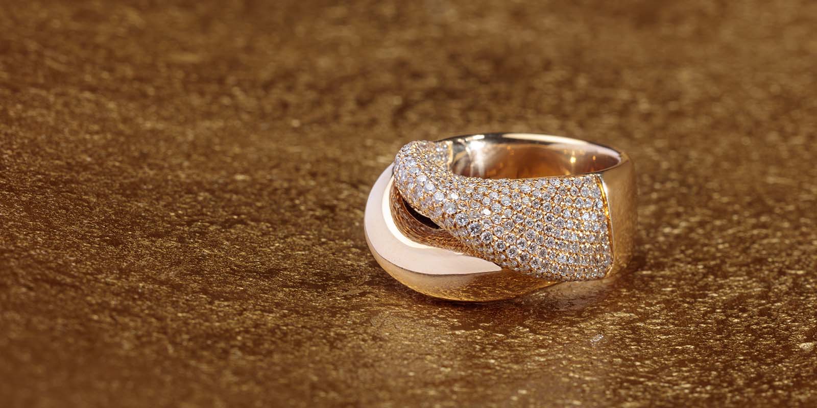 Ein opulenter Ring aus 750er Gelbgold mit 304 Diamanten aus dem Hause Wempe