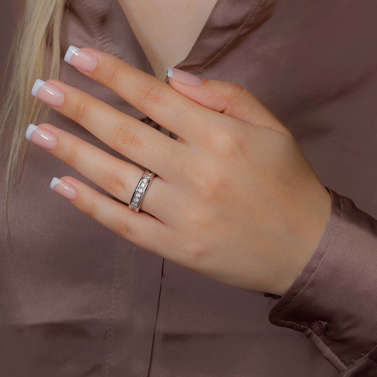 Ein Band aus gleißenden Diamanten auf einem Ring aus 585er Weißgold