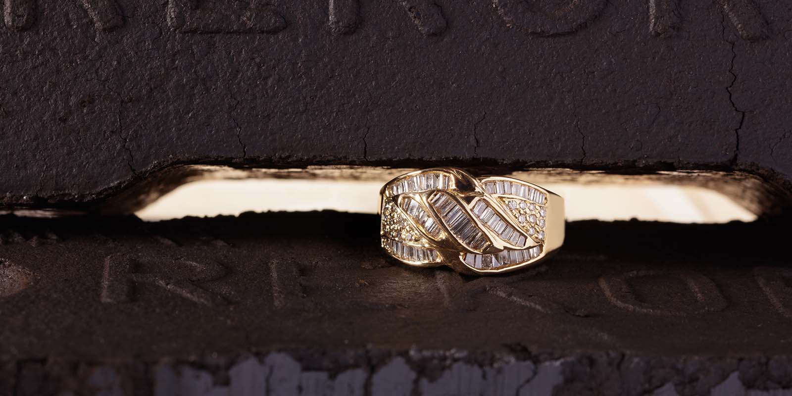 Ein Ring mit wunderschönen Blattstrukturen aus 78 Diamanten und 750er Gelbgold