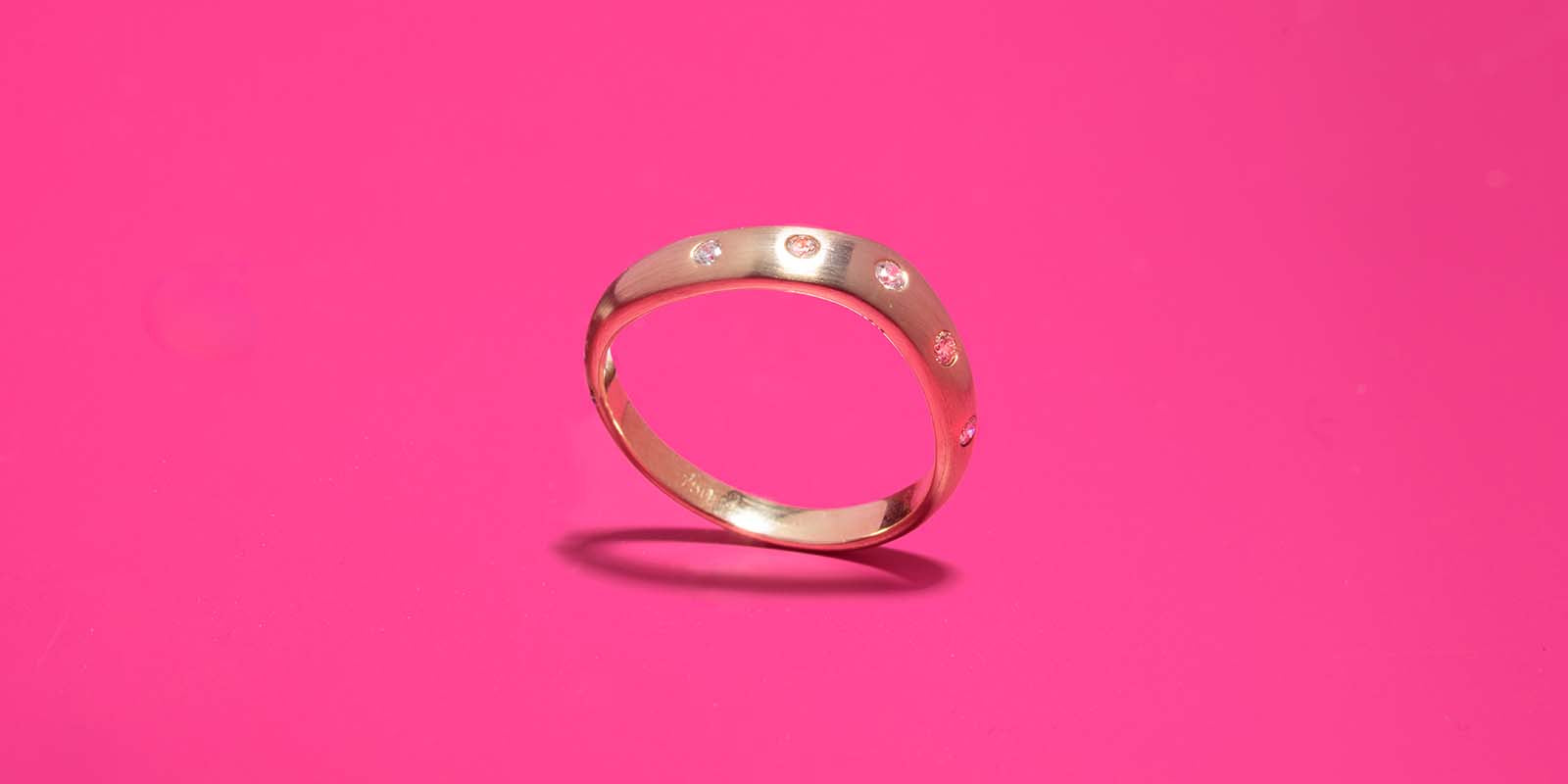 Fünf eingeriebene Diamanten auf einem Ring aus seidenmattem 750er Rotgold