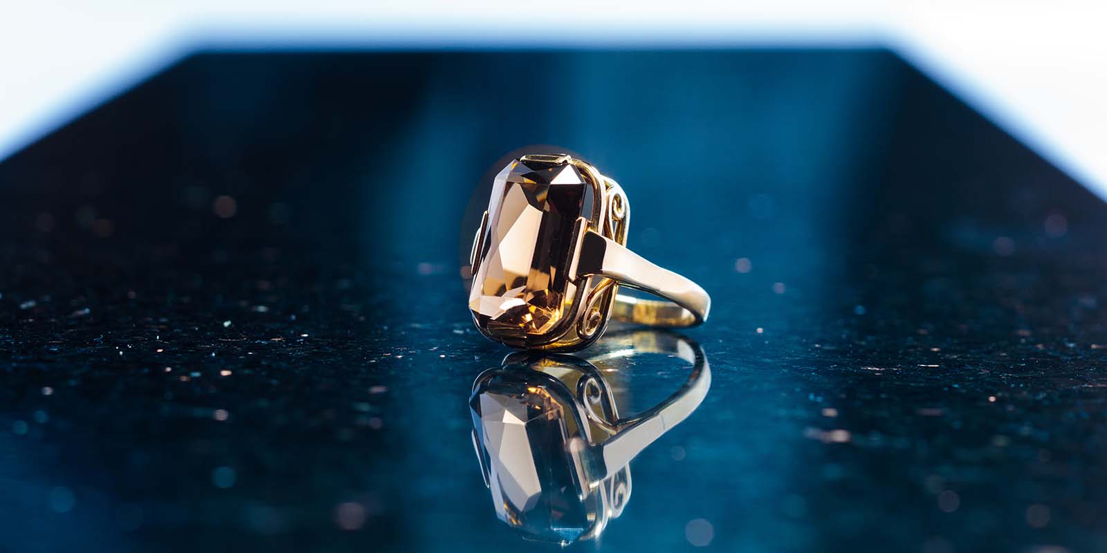 Farbsteinring aus 585er Gelbgold mit Rauchquarz