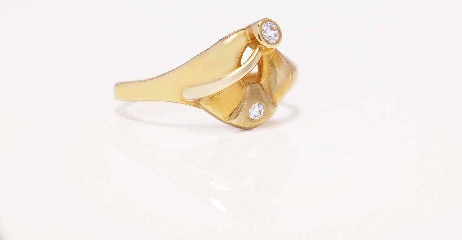 Verspielt designter Ring aus 375er Gelbgold mit zwei Zirkonia
