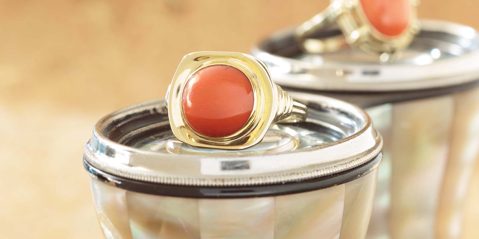 Ein Vintage-Ring aus 333er Gelbgold mit roter Koralle