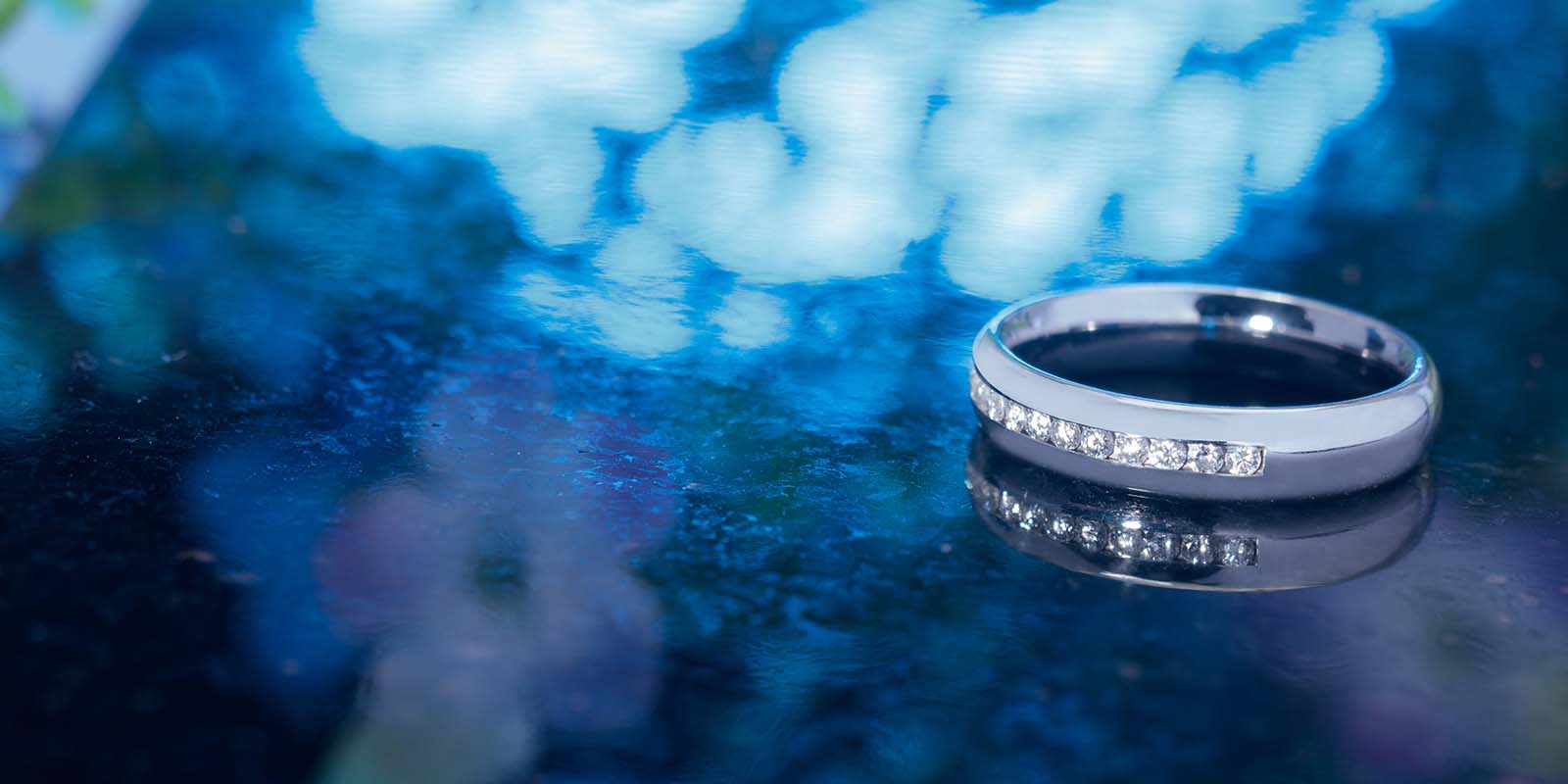 585er Weißgold-Ring mit Kanalfassung für zwölf funkelnde Diamanten im Wesselton
