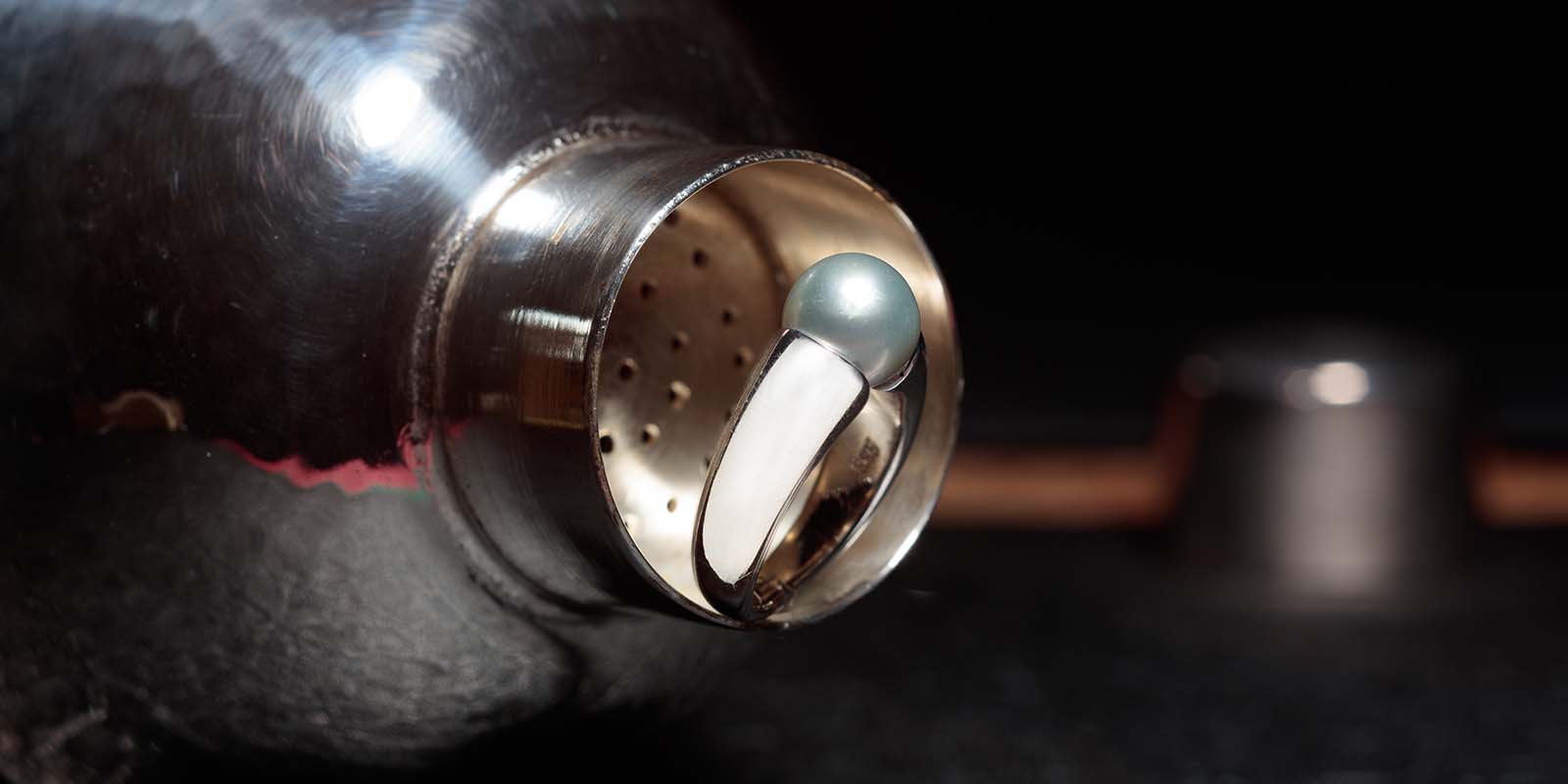 Eine graue Akoya-Zuchtperle auf einem kraftvollen Ring aus 585er Weißgold
