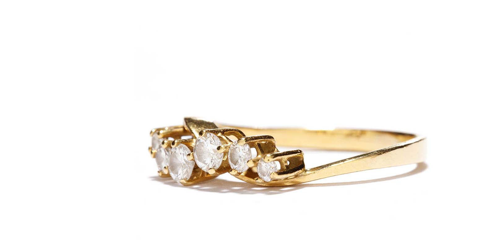 Ein Ring aus 750er Gelbgold mit sechs leicht versetzt angeordneten Diamanten