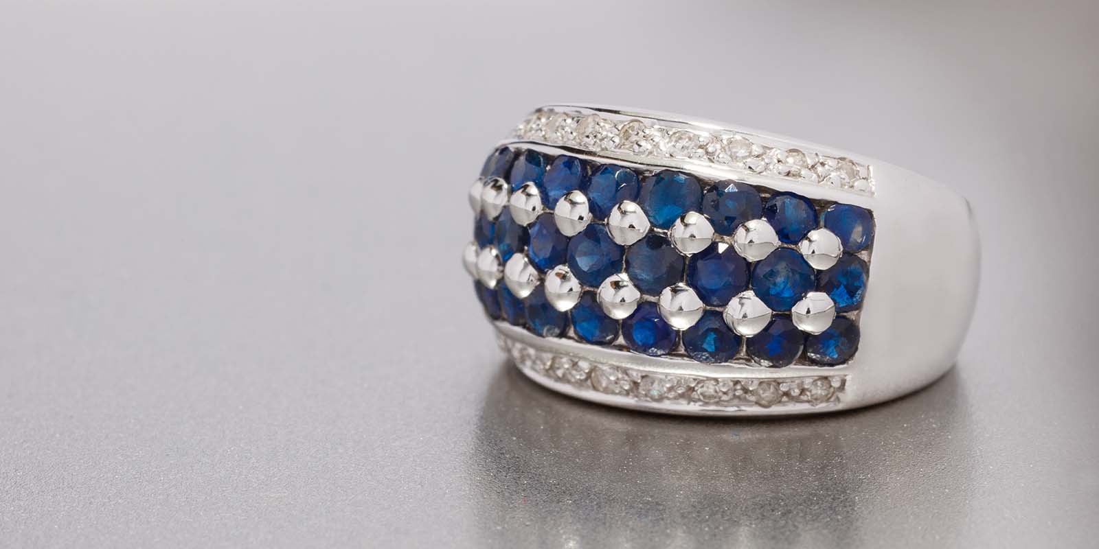 24 Saphire und 18 Diamanten auf einem Ring aus 585er Weißgold