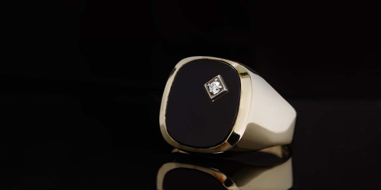 Siegelring aus 333er Gelbgold mit Onyx und darin eingebettetem Zirkonia