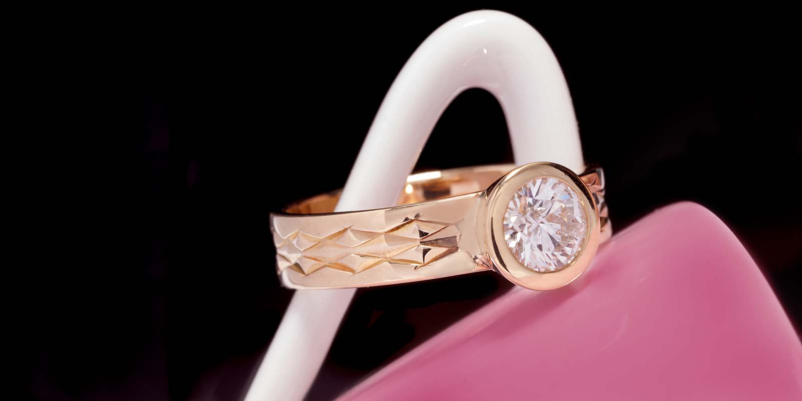 Solitär-Ring aus 585er Gelbgold mit auffälligem Diamanten in Zargenfassung