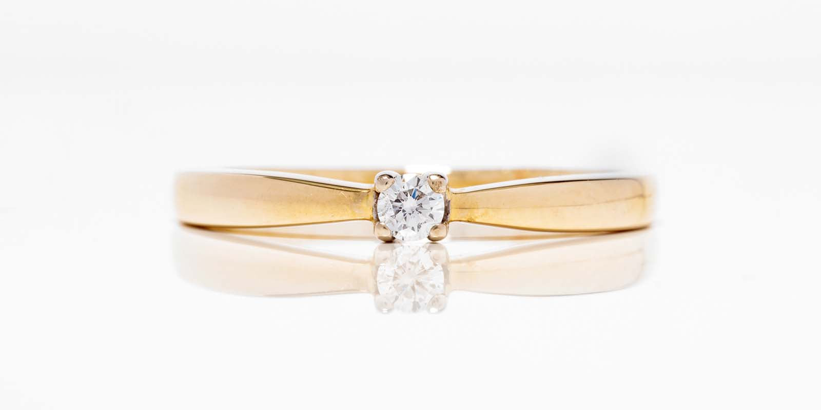 Ein Solitär-Ring mit einem feinen Ringband aus 585er Gelbgold
