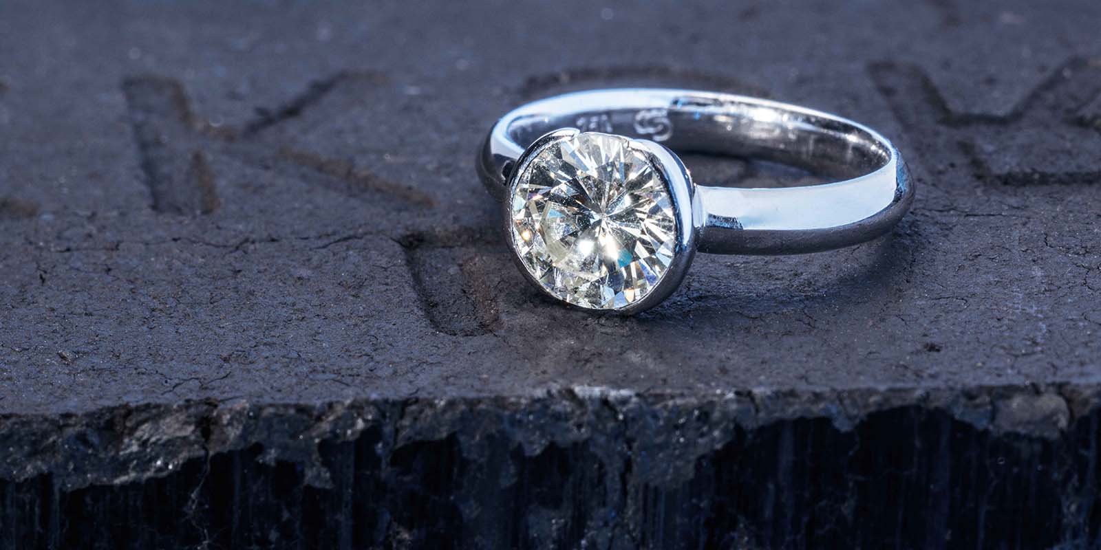 Ein schmaler Solitär-Ring aus 750er Weißgold mit einem kostbaren Diamanten