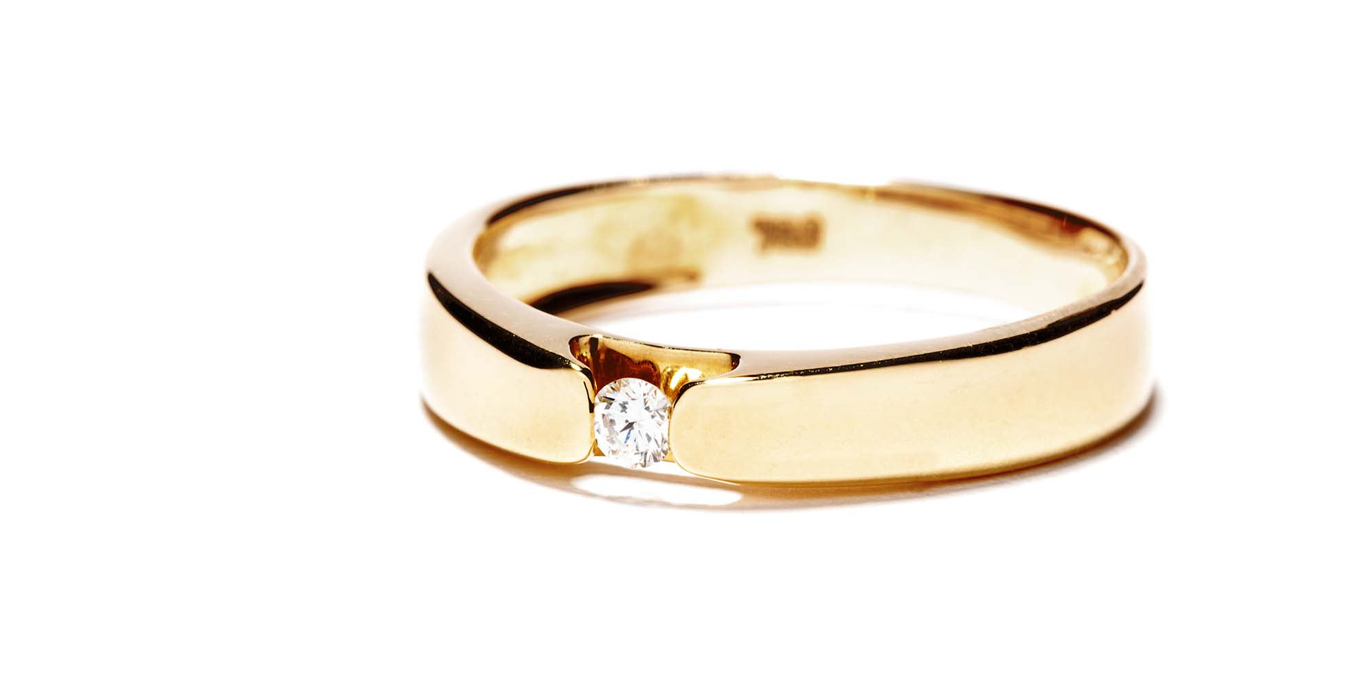 Ein Spannring aus 750er Gelbgold mit einem Diamanten in einer optisch ansprechenden Fassung