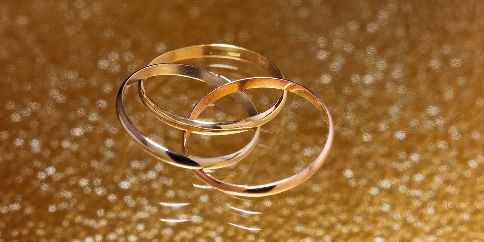 Ein Ring, gefertigt aus drei einzelnen Ringen verschiedener Goldlegierungen