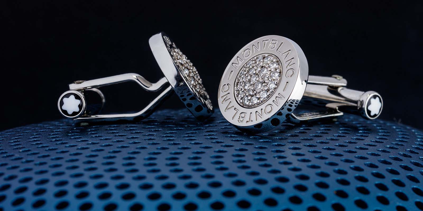Montblanc-Manschettenknöpfe aus Edelstahl mit Diamanten