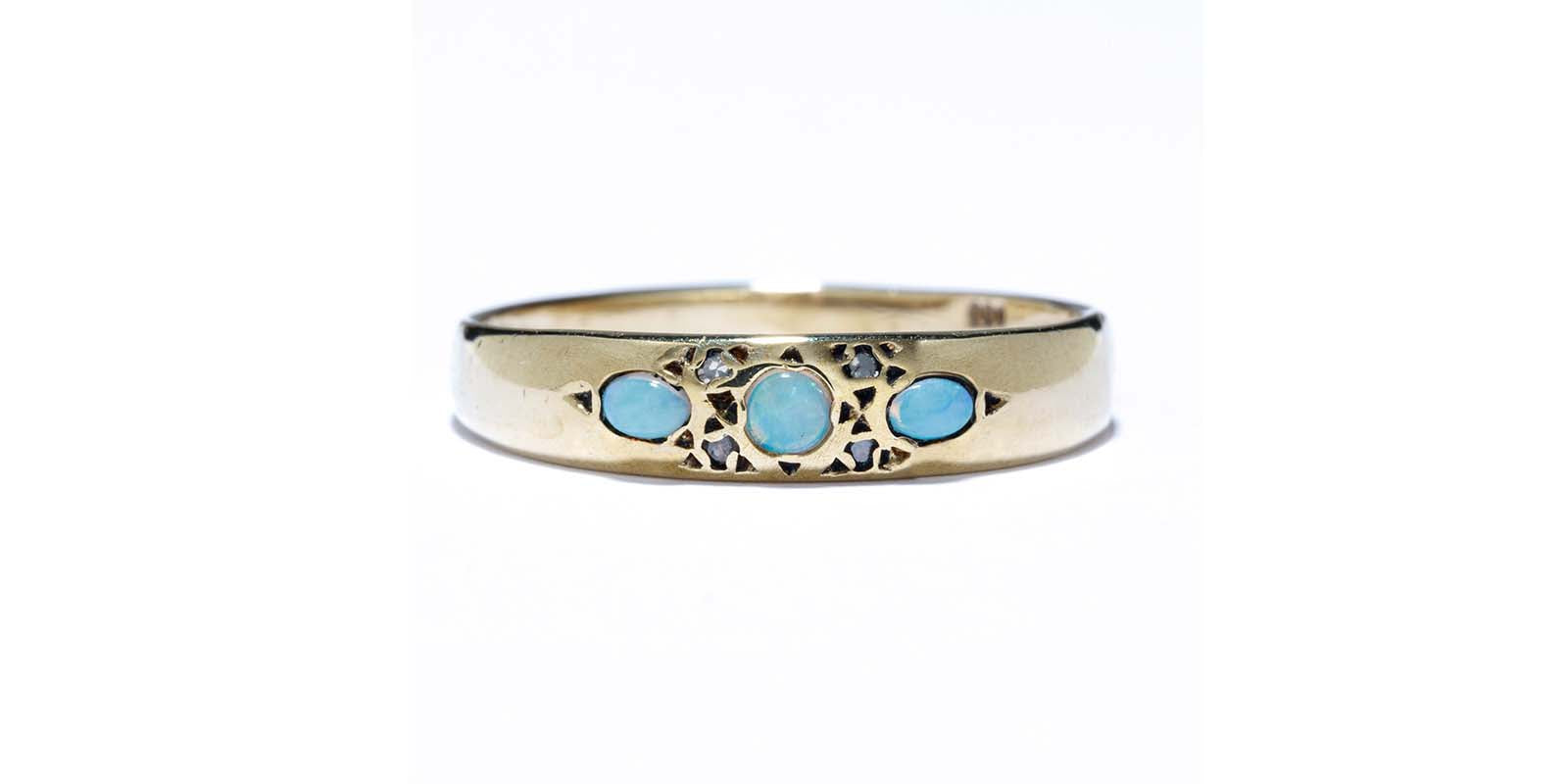 Bandring aus 333er Gelbgold, mit drei in die Ringschiene gefassten Opalen
