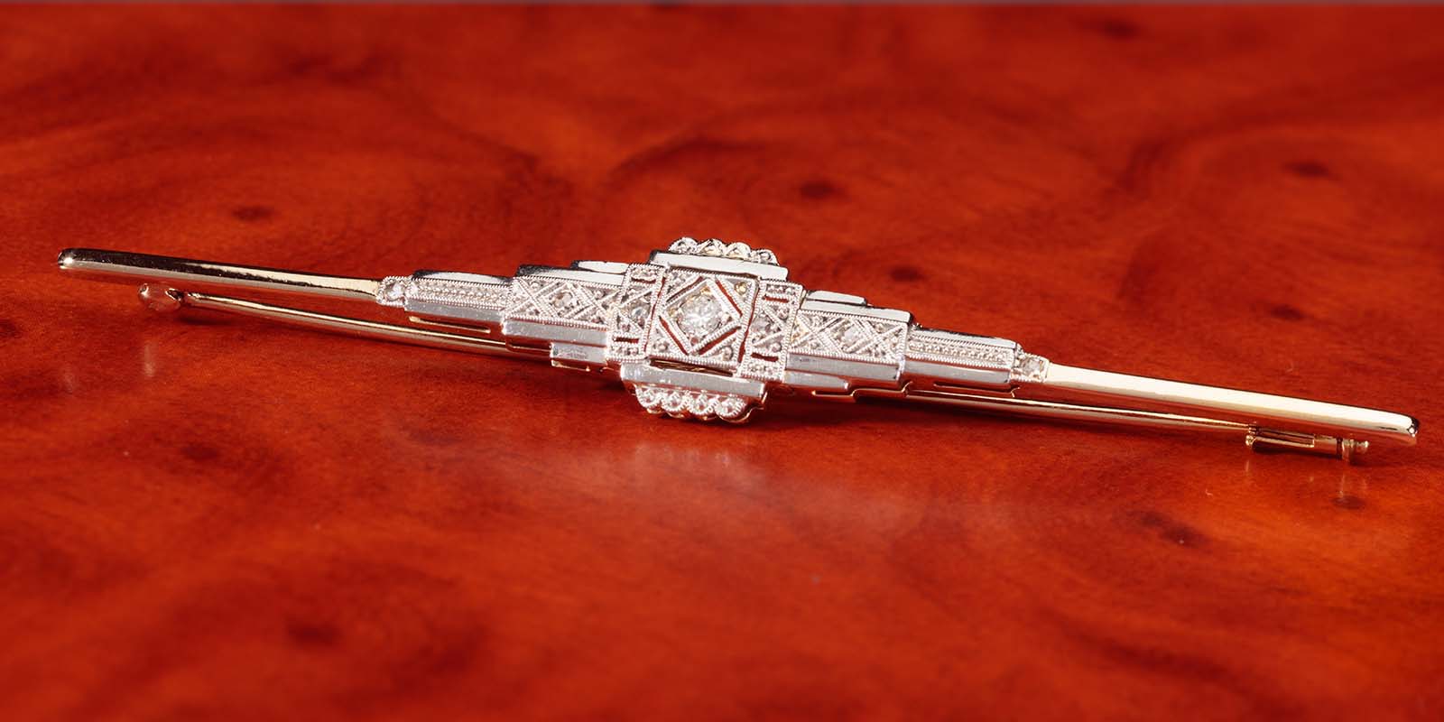 Eine antike Stabbrosche mit unterschiedlich geschliffenen Diamanten